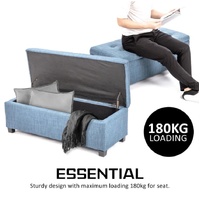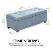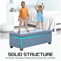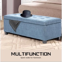 Storage Ottoman Blanket Box Linen Fabric Foot Stool Couch Bed LIGHT BLUE