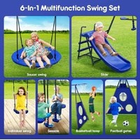6 in 1 Swing Set with Slide Seesaw Basketball Hoop Football Gate-Outdoor Playset