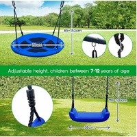 - Multiple options for endless fun: a saucer swing and an individual swing, a slide, a seesaw, a basketball hoop, and three football gates to keep your child having fun all day long.