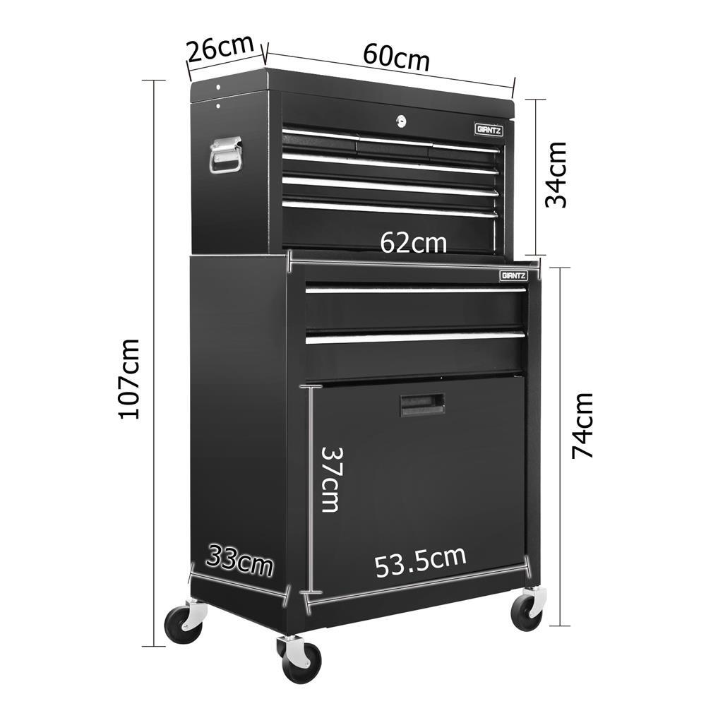 1 x 8 drawer 2 piece combo toolbox with 3 inches castors