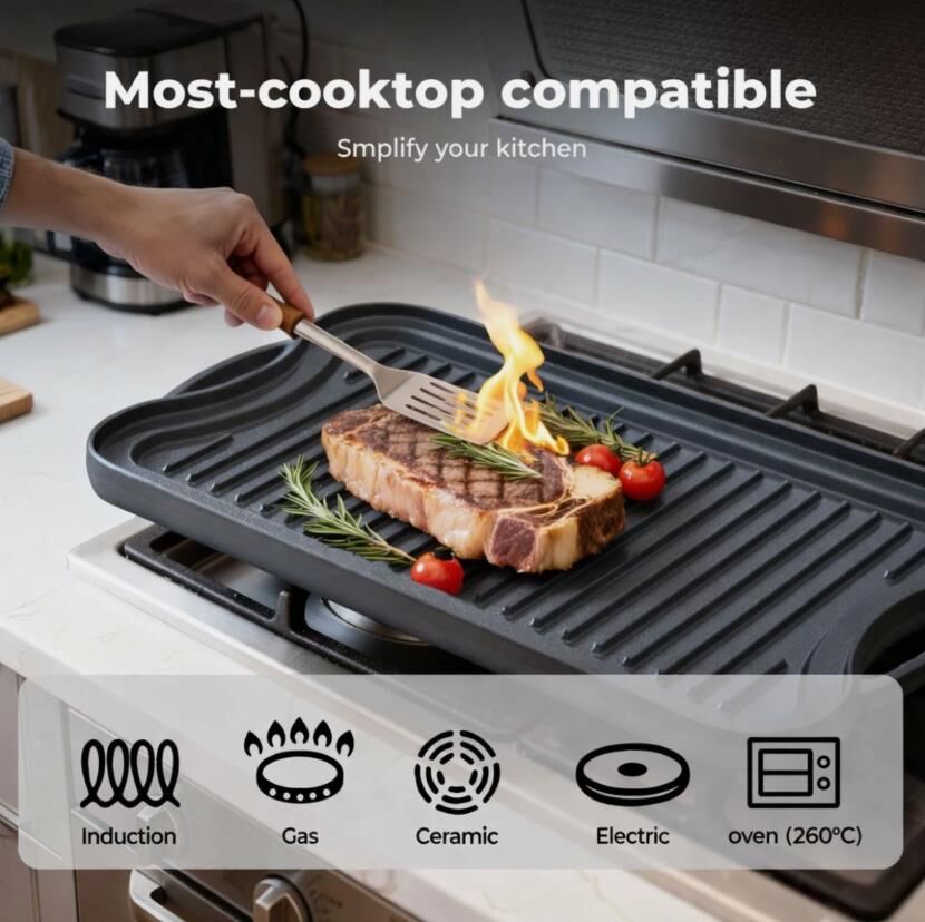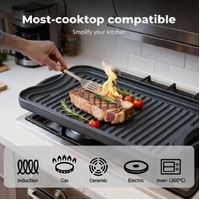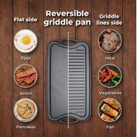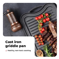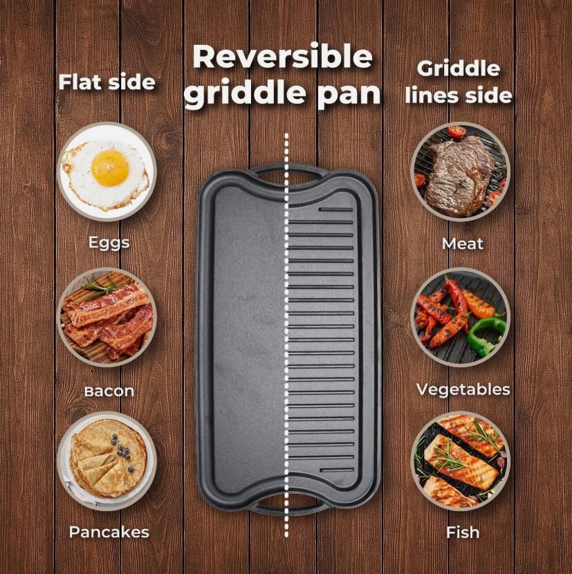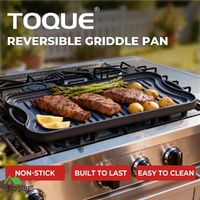 Toque 50.5cm Reversible Cast Iron Griddle Plate Non-Stick Grill Skillet Kitchen