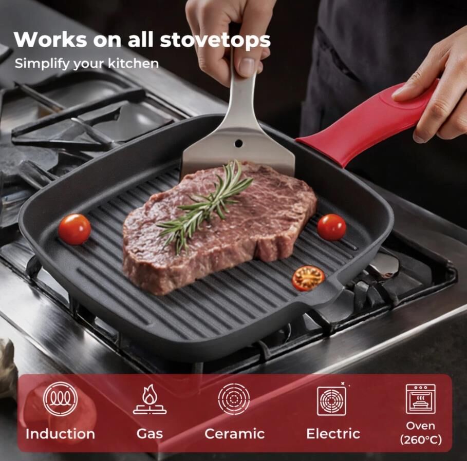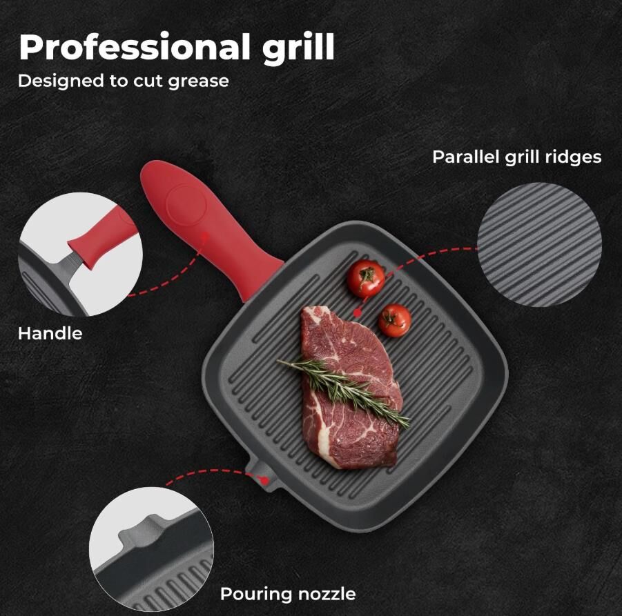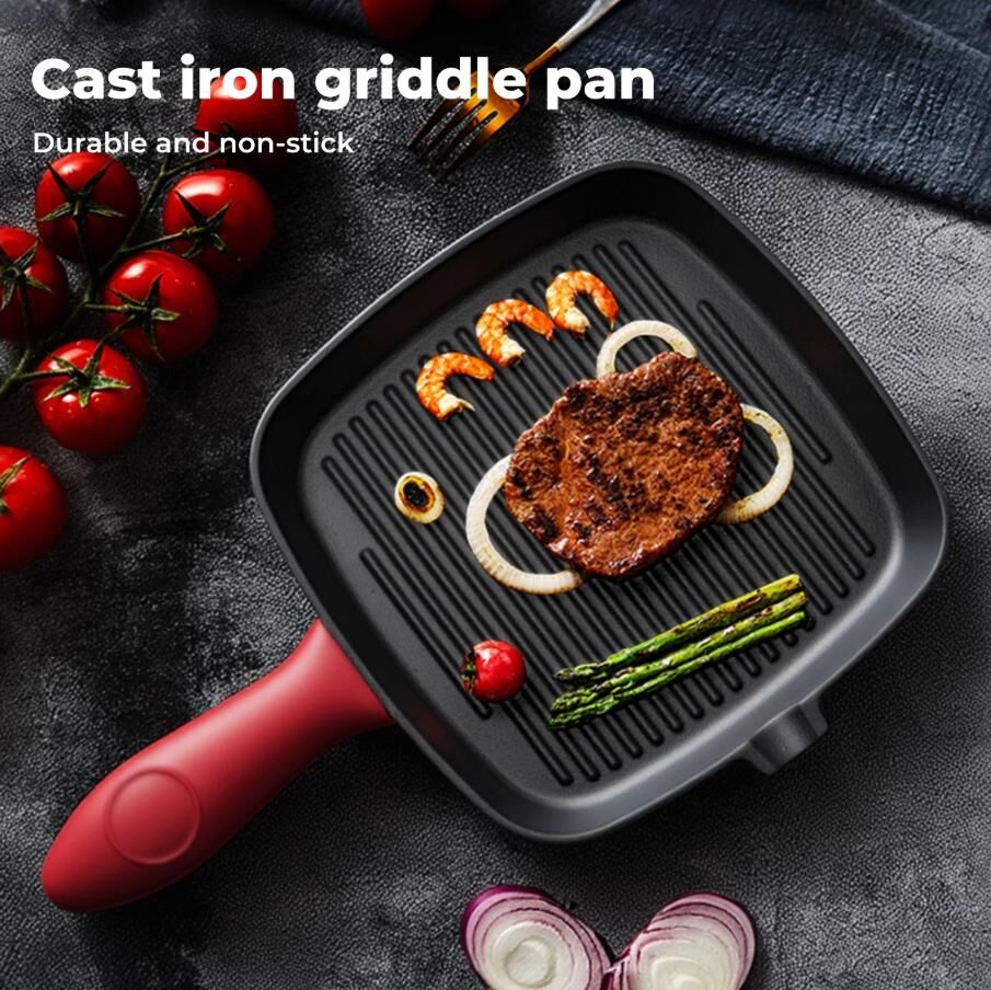 Engineered for authentic grilling at home, the Toque square grill pan combines traditional craftsmanship with everyday convenience. Made from heavy-duty cast iron cookware, this cast iron grill pan delivers excellent heat retention and even distribution, helping you achieve restaurant-style searing and bold grill marks on steaks, vegetables, and seafood. Pre-seasoned with natural vegetable oil, the Toque grill pan offers a naturally non-stick surface without synthetic coatings, making it a healthier choice for daily cooking.