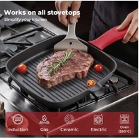 Toque Cast Iron Square Grill Pan with Spouts BBQ Skillet Cookware Kitchen