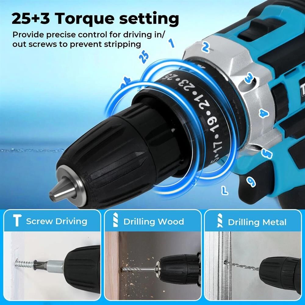 The 30-piece accessory set rounds out this cordless drill combo, offering all the essentials for versatile performance. Whether you’re a professional or a DIY enthusiast, this cordless drill set is built to handle a wide range of home and workshop needs.