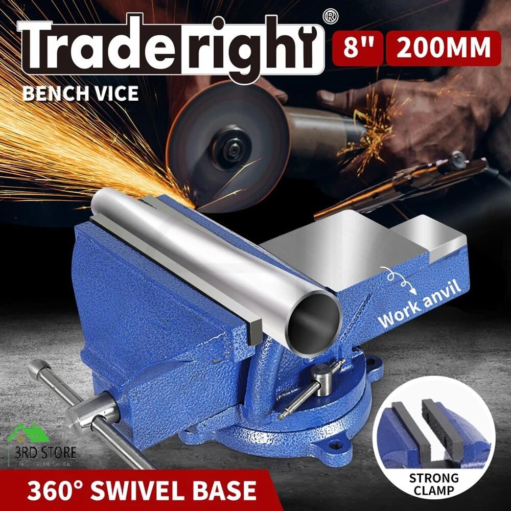 Traderight 8" Bench Vice Anvil Swivel Base Clamp Workbench Heavy Duty Grip 200mm