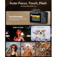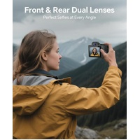 - 【Dual Lens & 6-Axis Stabilization】Switch between front and rear lenses effortlessly for flawless selfies or dynamic vlogs with this versatile digital camera. With 6-axis stabilization, this vlogging camera for YouTube reduces shaky footage during fast-paced action or handheld recording, ensuring smoother videos. The 16X digital zoom ensures clear shots of distant subjects, making this cameras for photography perfect of sports, events, or candid moments—without compromising stability