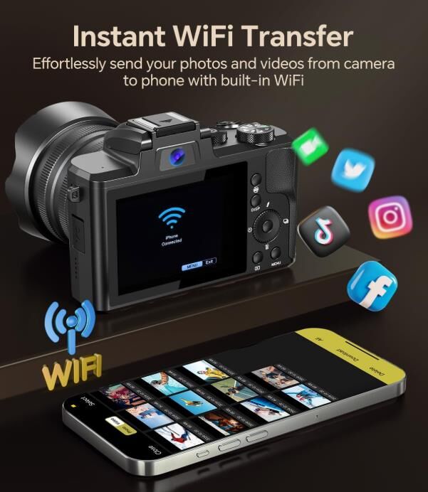 - 【8K Video & 88MP UHD Photo】Fulealfly 8K Digital Camera features a Sony IMX586 Sensor that captures ultra-sharp 8K video and 88MP photos, delivering studio-grade clarity for both photography enthusiasts and beginners. Whether documenting daily life or travel adventures, it's a cost-effective cameras for photography that balances professional results with ease of use. Ideal for enthusiasts and beginners seeking high performance without complexity