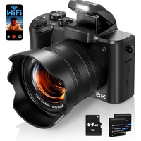 - 【Mode Dial & Exceptional Service】Backed by 12 months hassle-free promise- refund and replacement. Your creativity deserves peace of mind. Unlock creativity with 8 modes: Smart Auto, Portrait, Scenery, Slow Motion, Time-Lapse, and more. The mode dial makes switching effortlessly—ideal for beginners and hobbyists. Packaged in a sleek gift-ready box, this 8k digital camera is ideal for teens, travelers, or anyone starting their cameras for photography journey