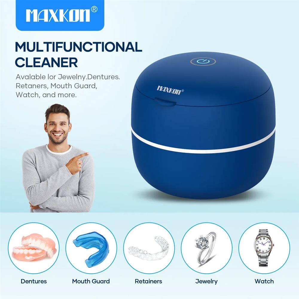 - Portable and space-saving design for on-the-go cleaning of dentures, aligners, retainers, whitening trays, and night dental mouth guards—ideal for travel.