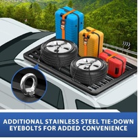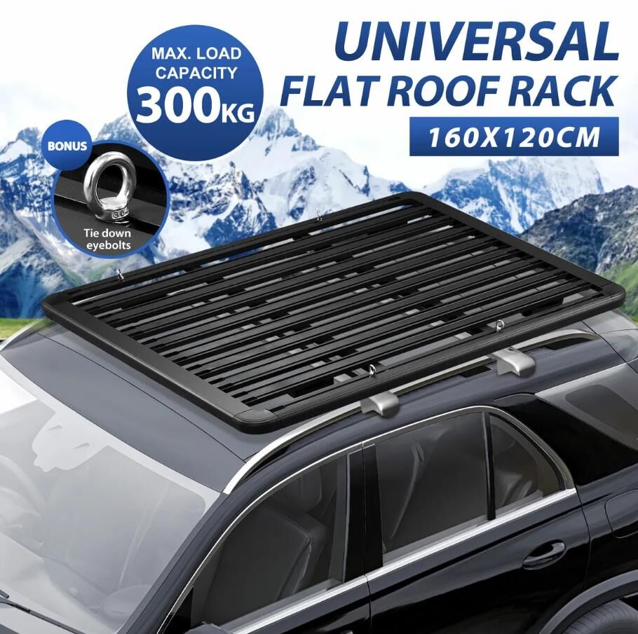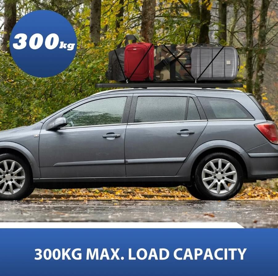 Take to the road with confidence by using our Universal Car Roof Rack Platform Tray Basket. Available in an extra-thick flat tray design, this car roof rack offers an abundance of space for your cargo, whether you're headed on a cross-country road trip or a weekend outdoor adventure. Constructed from robust aluminium alloy and finished with a sleek black powder coating, this roof platform supports confidently up to a 300kg load capacity and lasts for long-time service. Thanks to its waterproof paint, the car top carrier keeps rust and corrosion at bay and maintains the integrity of your belongings. For added convenience, it includes additional stainless steel tie-down eyebolts, enhancing your car roof storage solution.