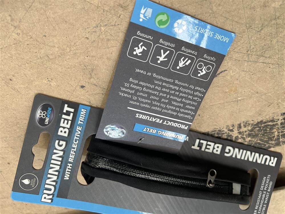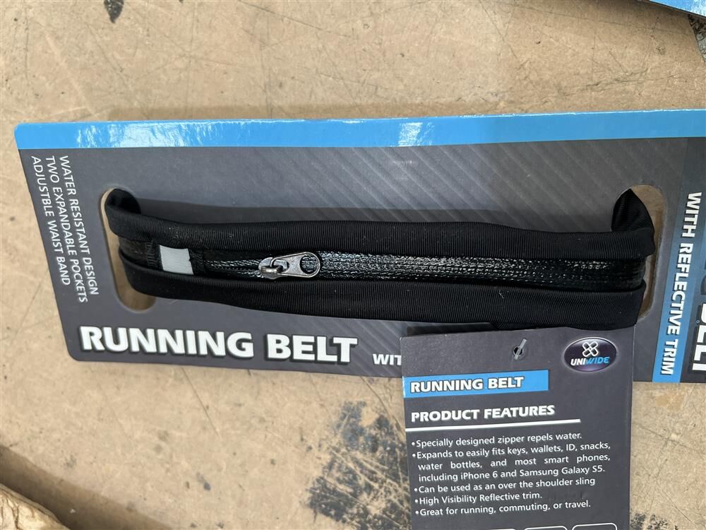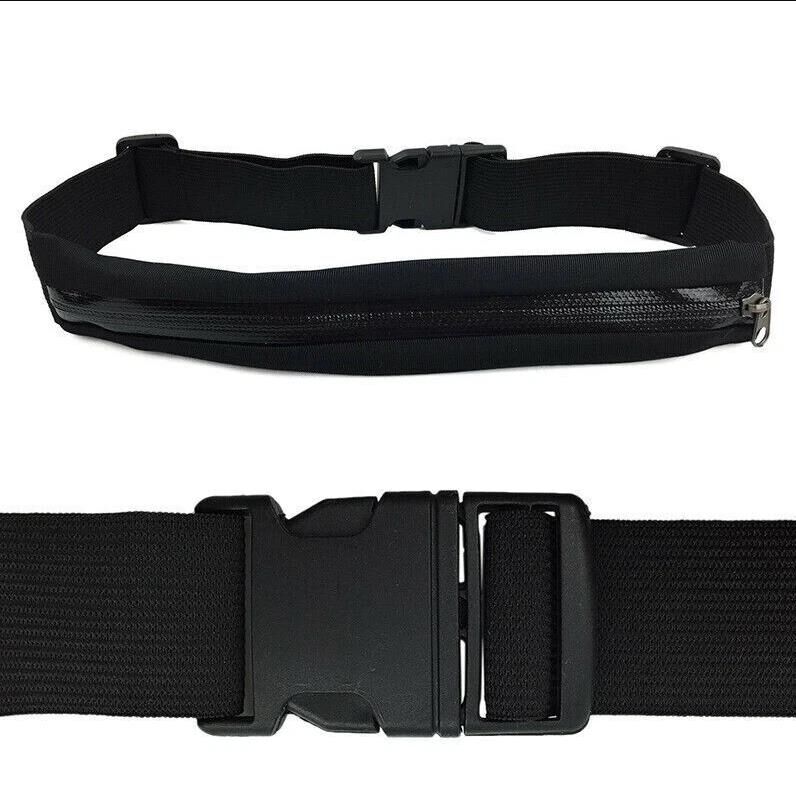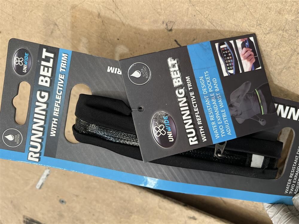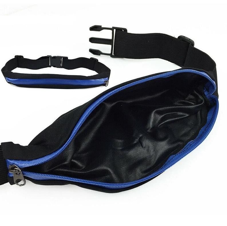 Uniwide Running Belt Black Blue Reflective Stretch Belt Bag 2 Pouch Water Resist
