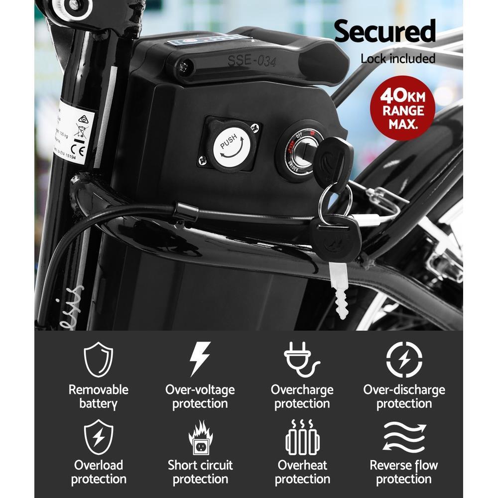 For effortless riding, look no further than our VECOCRAFT Electric Bike. With its 36W 8Ah lithium battery, this astounding electric bike can really go places with up to 40km on a single charge. The ever-dependable 250W brushless motor can deliver a maximum street-legal speed of up to 25km/h for every cycling activity. Built to last, the bicycle features a steel frame that is strong and sturdy. Better still, the frame is foldable, which make it so easy to transport and store. Plus, the electric bicycle is also loaded with a host of useful features that makes riding it a pleasure. Such as the high-quality Shimano 6-speed shifter mated to 20″ tyres for smoother cruising, thick cushioned seat for extra comfort, and front and rear V-brakes for effective braking. The carrier basket and bag rack ensure firm storage, while an LED headlight makes night riding as clear as day.