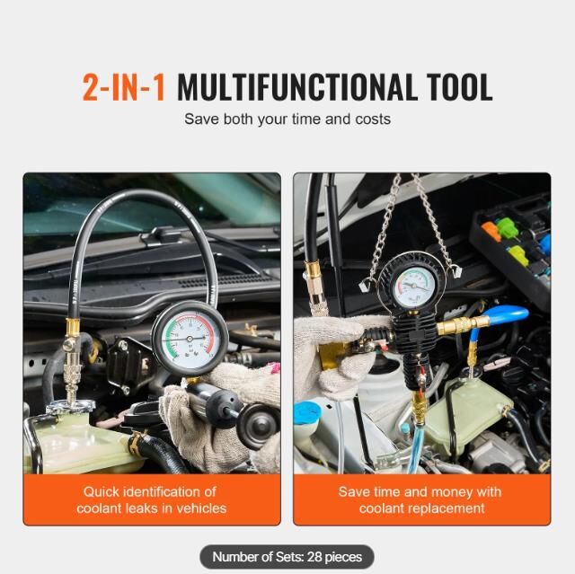 VEVOR 28 pcs Universal Radiator Pressure Tester Kit, Coolant Pressure Tester Kit