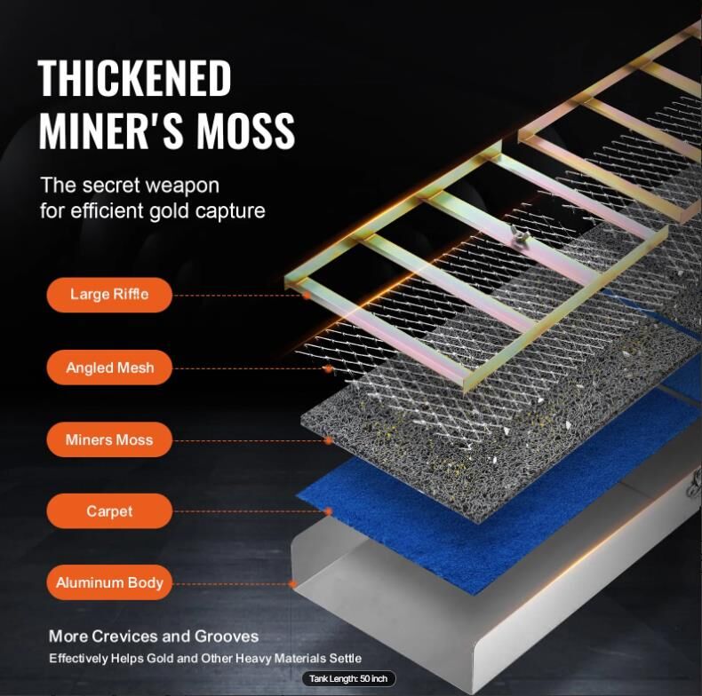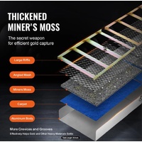 - Efficient Gold Recovery: The thickened miner's moss features more crevices and grooves, making it easier for gold particles and other heavy materials to settle on the mat. The gold mining kit effectively washes away light sand and worthless impurities, saving time and resources and allowing you to focus more on valuable gold.