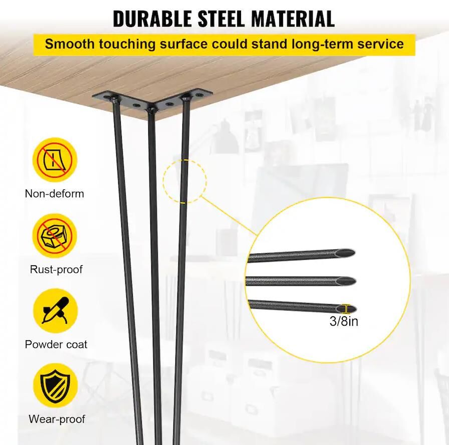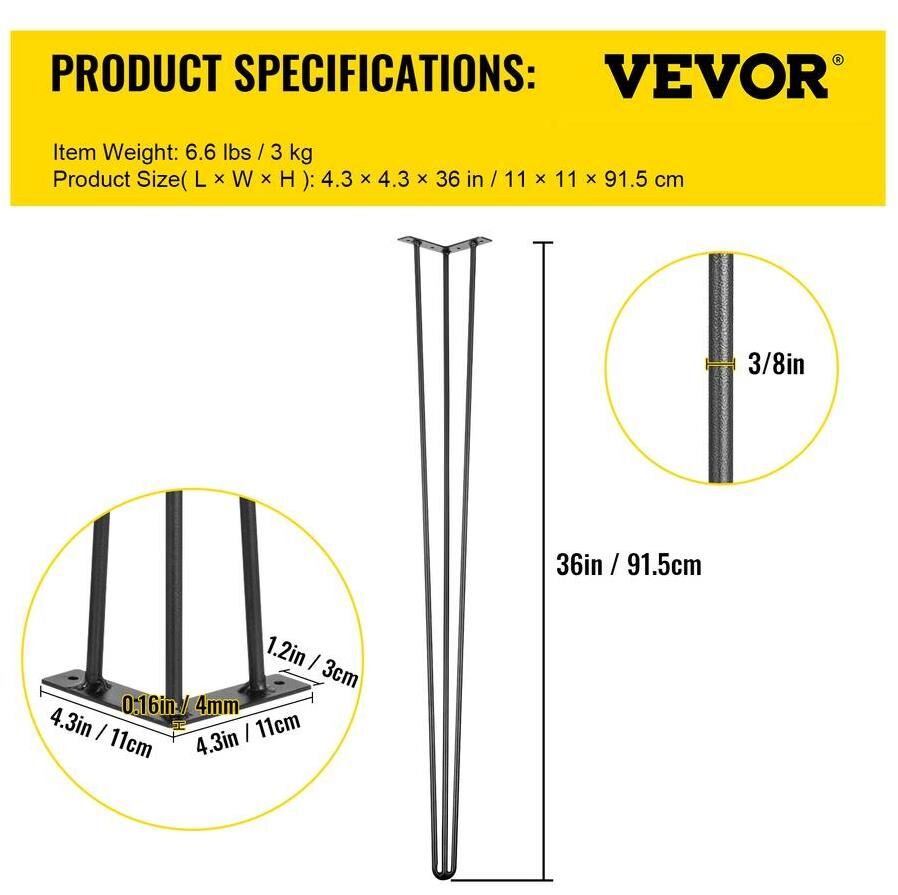 If you are searching for a creative way to decorate your rustic or modern style home, our hairpin legs are the perfect choice for creating a unique piece. Comes with 4 sets of legs and matched screws for effortless DIY projects on your desks, benches, or any piece of furniture in between! Get ready to stretch your creativity with VEVOR.