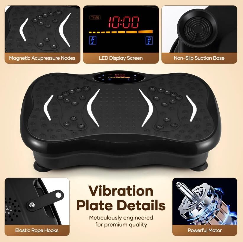 - Efficient Training: High-frequency vibrations trigger deep muscle contractions, helping you burn calories faster and achieve your fitness goals quicker than traditional cardio.