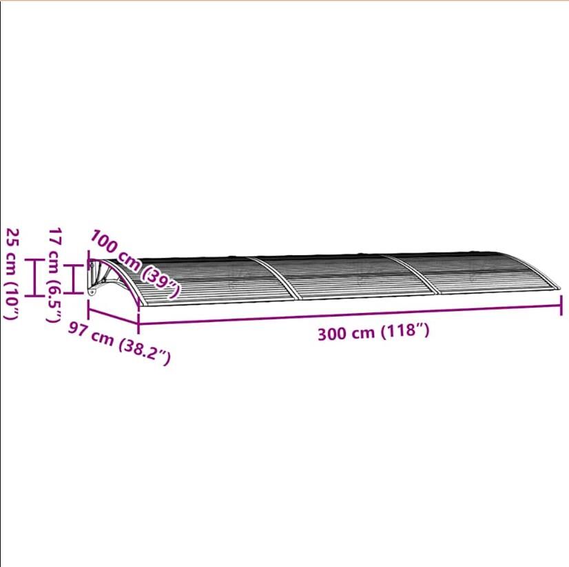 vidaXL Door Canopy Black 300x100 cm Polycarbonate
