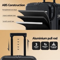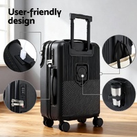 Wanderlite 20" Luggage Suitcase Front Pocket Travel Carry On TSA Black