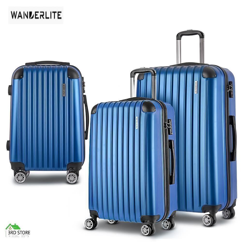 Wanderlite 3pc Luggage Sets Suitcases Trolley Set TSA Hard Case Lightweight Blue