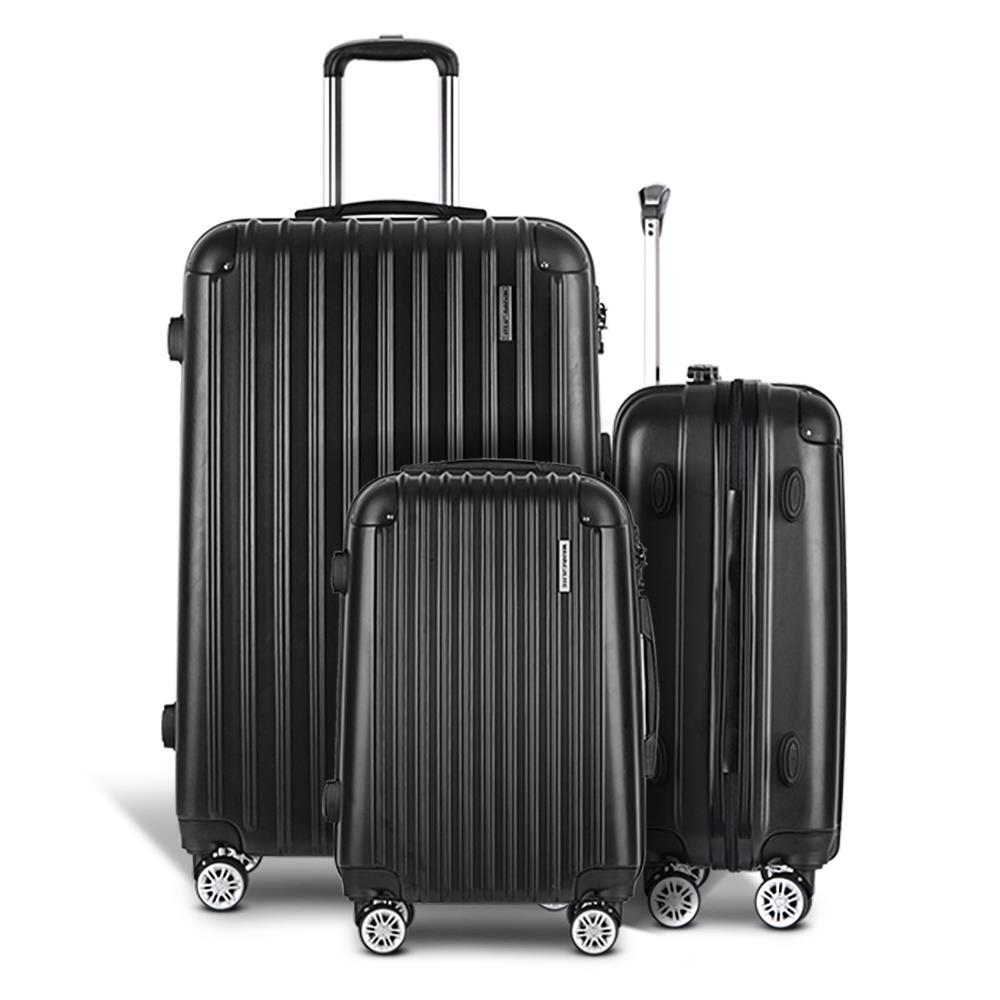 Wanderlite Suitcase Luggage Sets 3pc Set Travel Hard Case Lightweight Black