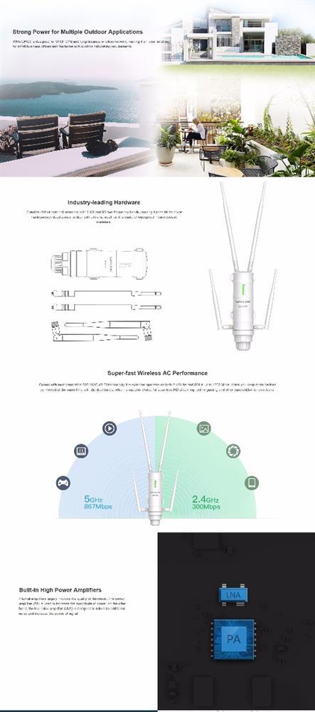 1 x WAVLINK AC1200 High Power Outdoor Gigabit Wi-Fi Range Extender (Aerial HD4)