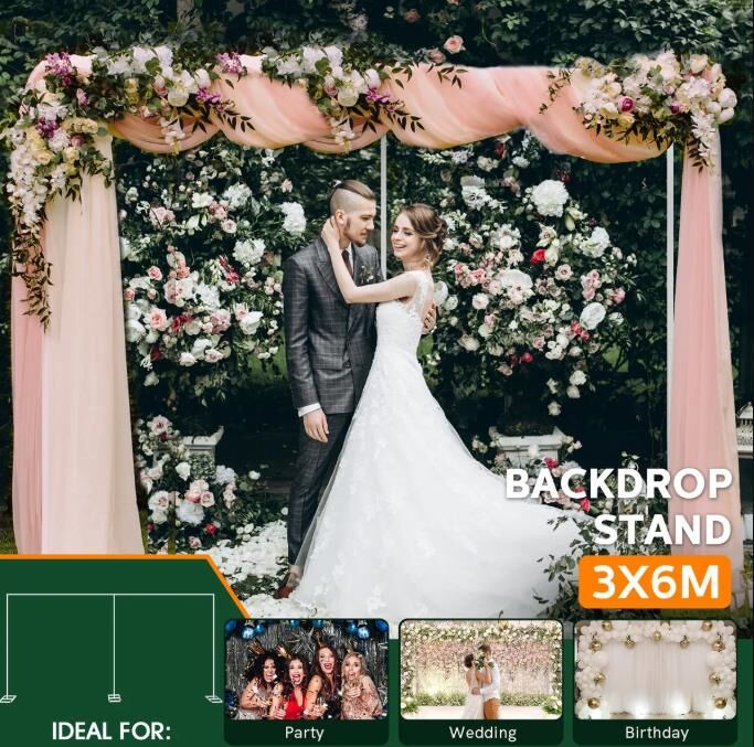Create an appealing visual scene for your party with this Wedding Backdrop Stand Party Photo Balloon Frame. Together with robust galvanised steel and exquisite painting technology, the photo backdrop stand is durable, waterproof, and corrosion-resistant for indoor and outdoor use. Loaded with a widened base, this photography backdrop stands firmly to avoid wobbling or falling. What’s more, it is easy to assemble and dismantle by one person due to its buckle snap connection design. You can adorn the party backdrop stand with fabric or paper banners, balloons, or flowers for various occasions, including weddings, ceremonies, anniversaries, celebrations, and more.