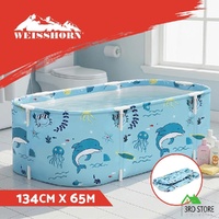 Weisshorn Foldable Bathtub PVC Spa Bucket Inflatable Cushion 132x65cm Blue