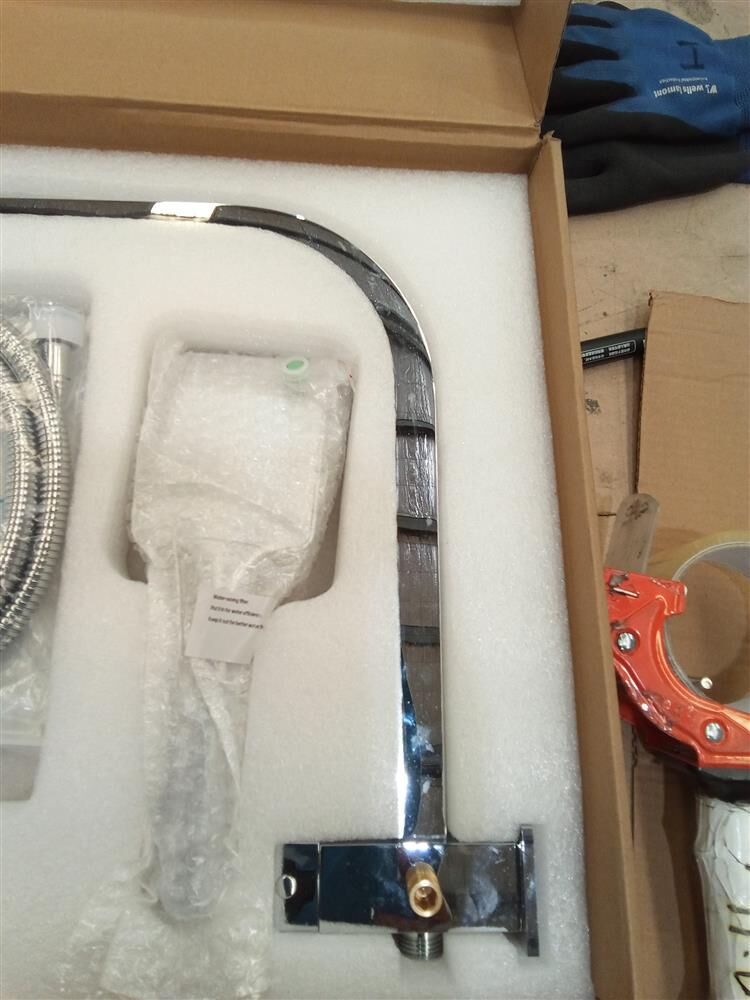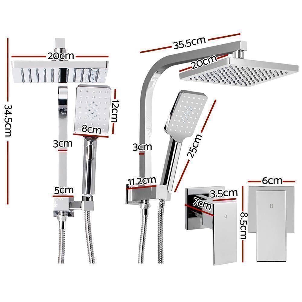 Overhead shower head dimensions: 20cm x 20cm