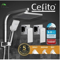 You will get a top quality fixed 8" shower head that simulates rainfall for a very soothing shower plus a handheld shower head with up to three spray patterns to let you target the water at specific areas with varying intensities. Made with a solid brass body and finished in premium chrome, the durable fixed shower head also features a built-in brass diverter to prevent leakage. The handheld shower head has a 1.5m stainless steel water hose to allow flexible use. And for a perfect mix of the right water temperature, our shower taps make it easy for you. The solid brass construction make these taps absolutely smooth and durable with a drip-free 35mm ceramic cartridge to prevent leakages. The brilliant chrome finish actually comprises a multi-layer finishing process with zinc, nickel and brass plating. The taps also have hot and cold markings for hassle-free use.