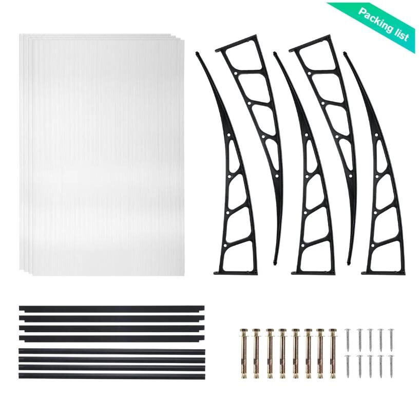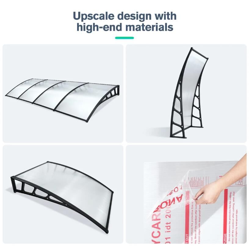 Invest in this window awning that strikes a better balance of functionality, appearance and durability. The awning measuring 1.5x4x0.33m is designed for trouble-free assembly and disassembly and can be installed over your windows, decks, patios, or entrances. Built out of a sturdy structure of thick polycarbonate, high-quality PP, and lightweight aluminium, the outdoor awning provides an effective solution for rain, sun, snow and harmful UV rays. Furthermore, the door awning can withstand moisture, rust, and corrosion. It is easy to care for and lasts long with minimal maintenance required. Designed in a modern style, the canopy is simple and fashionable enough to fit any type of home decor.