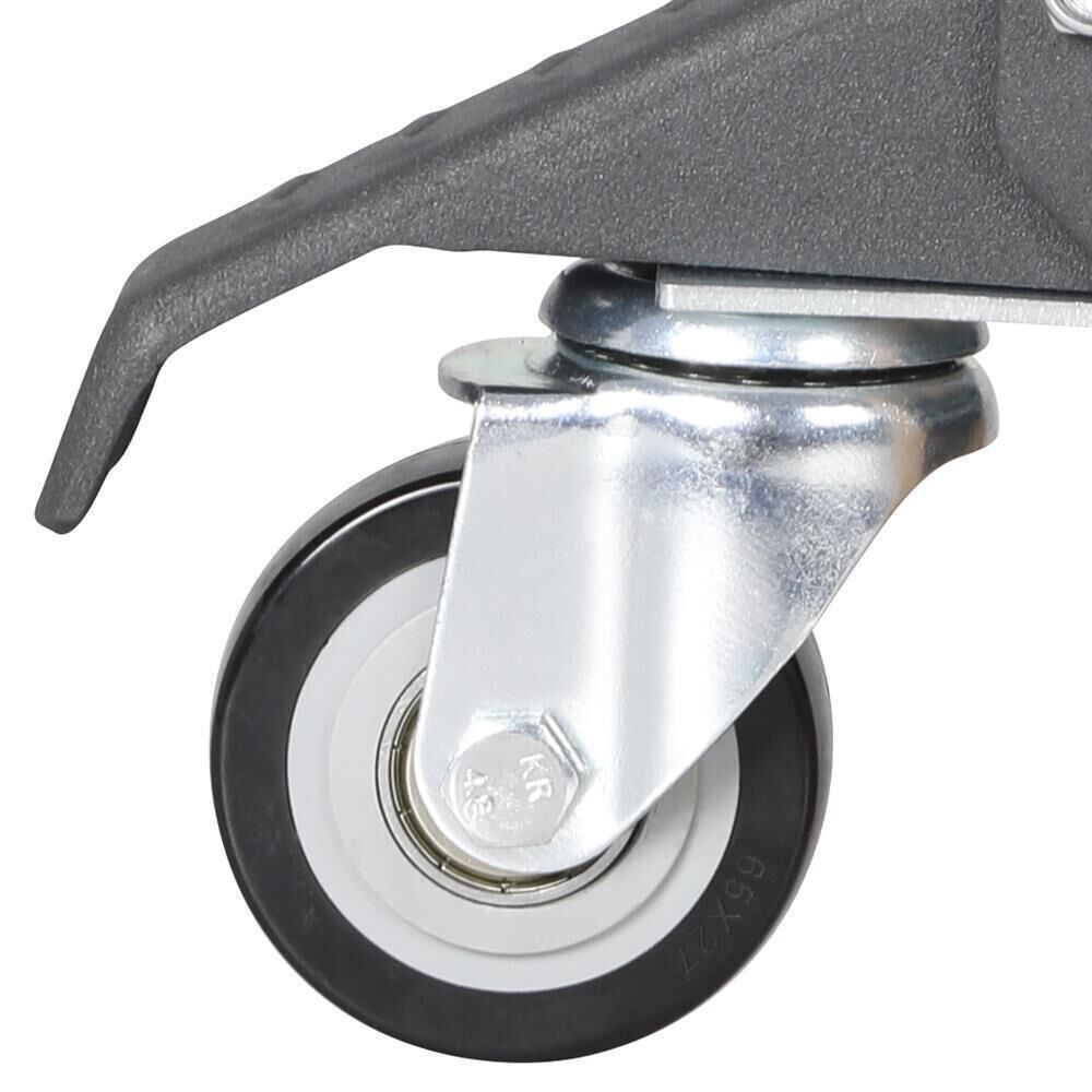 You don’t need to be a rocket surgeon to use your retractable caster wheels. Flick it up with your foot to stop your bench moving. Press your foot down to lift the table and let the wheel roll freely.