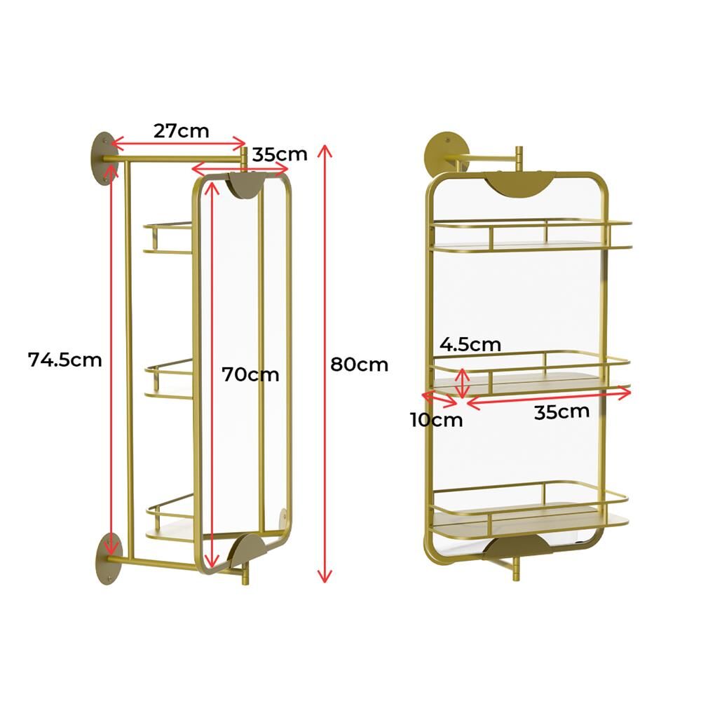 Yezi 70x35cm Wall Mirror 360° Swivel Bathroom Storage Mirrors Double-Side Gold