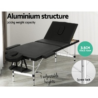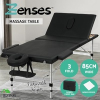 Zenses Massage Table 65CM Width 3 Fold Aluminium Portable Beauty Bed Black