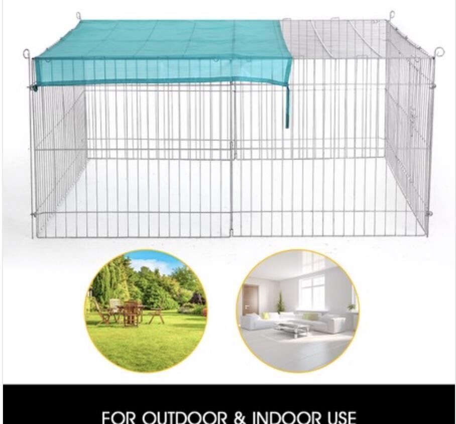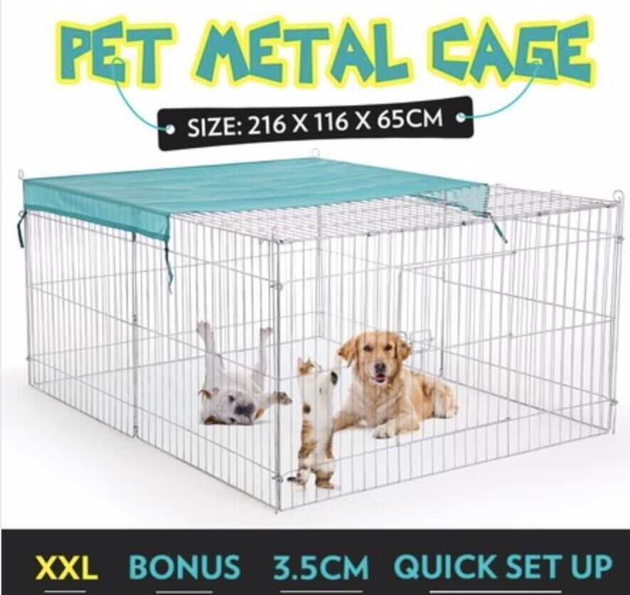 Never worry about your pets messing up your home while they are playing with the 2.2M Pet Metal Cage Playpen Dog Cat Enclosure with Fabric Cover. This pet enclosure ensures safety as well as playing area for your lovely little creatures. It's suitable for rabbits, guinea pigs and ferrets. It's also great for sick and pregnant animals providing designated area for them to rest. This pet supplies is made from strong steel frames. The metal is power-coated preventing it from getting rusty. The play pen is easy to set up and does not require any tools. The removable fabric cover gives them a pleasant shade. This portable pet fence is foldable for easy storage and transportation. Get this 2.2M play pen for your pets to have great fun!