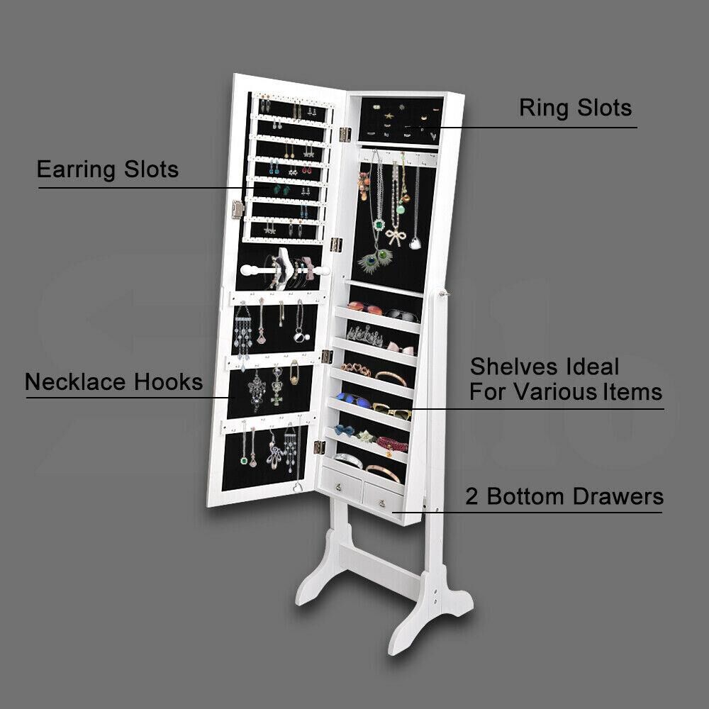 Stylish floor standing make up and jewellery cabinet - keep your jewellery and cosmetics safe, organised and easily accessible