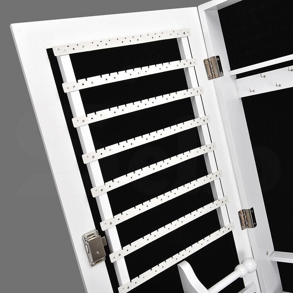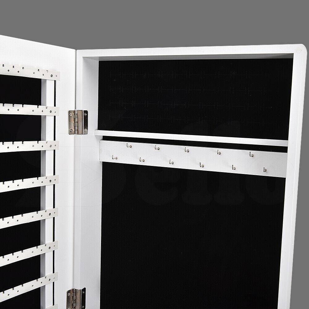 Holds up to 100 pairs of earrings, 48 rings, necklace, etc. Features 2 Drawers and 6 spacious shelves inside the door