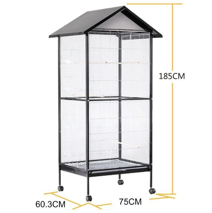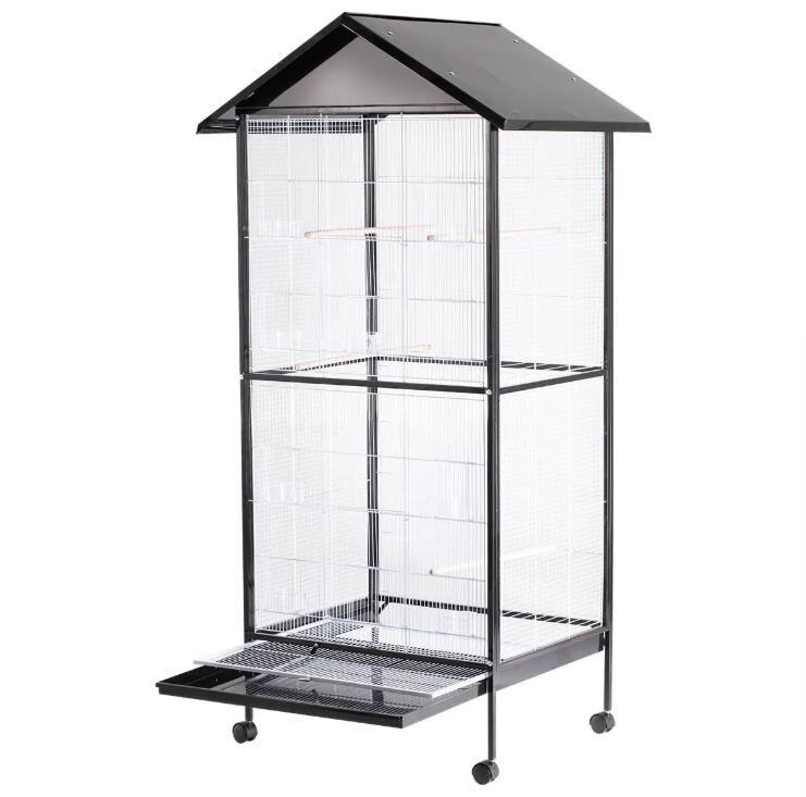 Large Stand-Alone Parrot Pet Budgie Canary Aviary Bird Cage On Wheels Apex Roof
